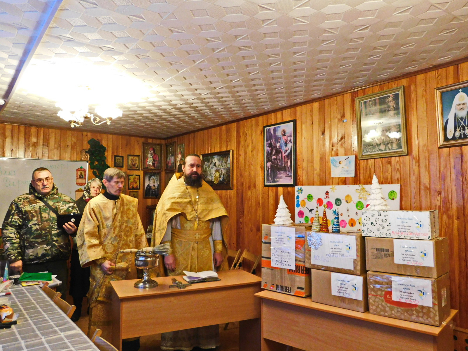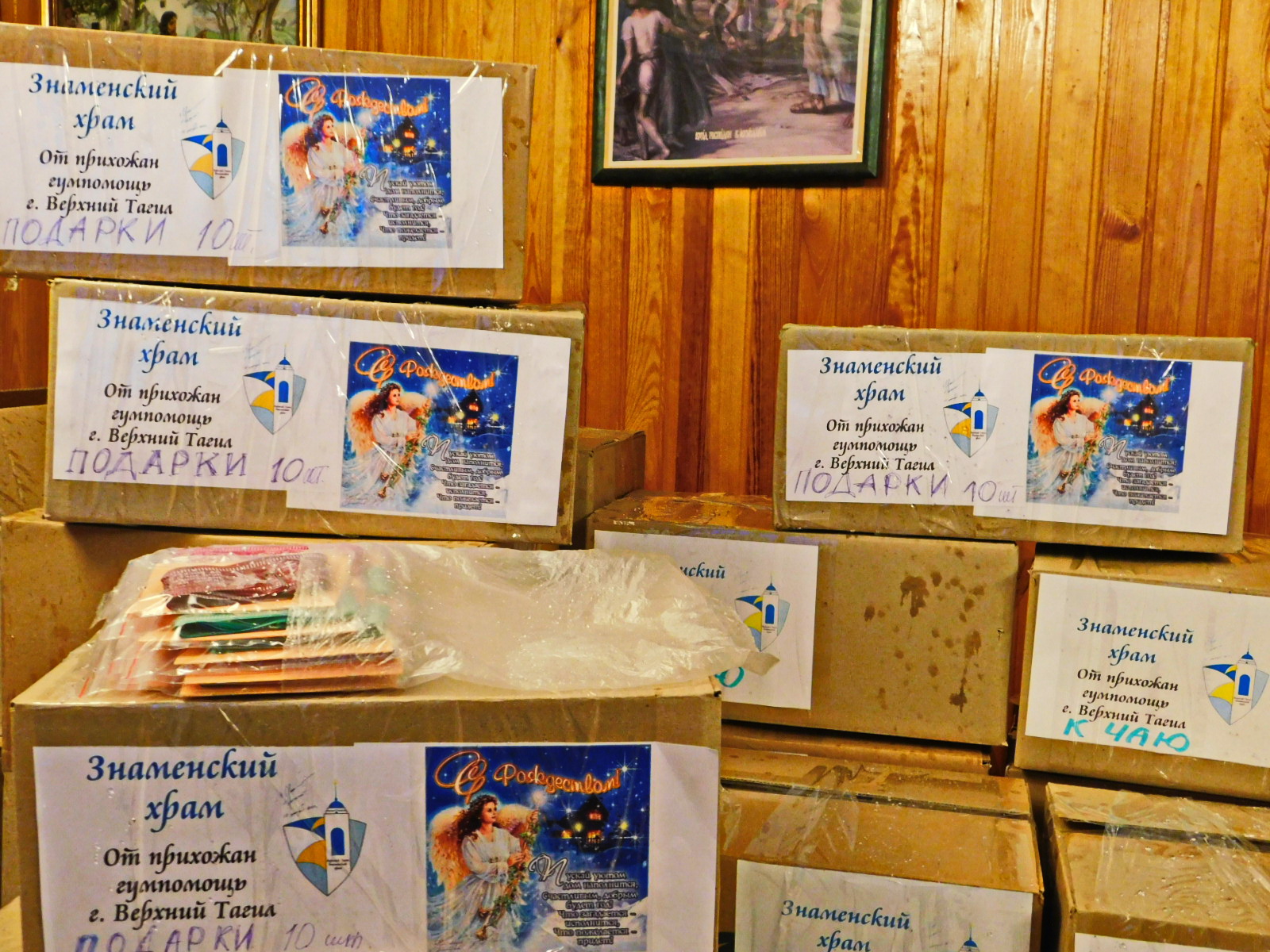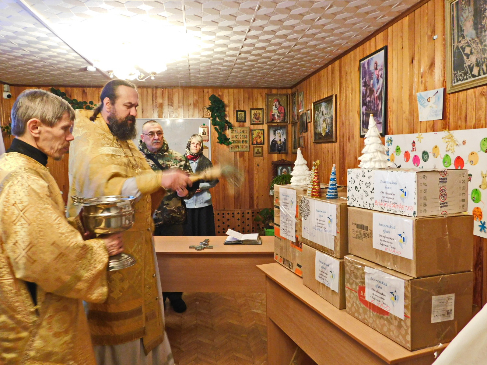 17 января была передана волонтерам благотворительного фонда СВОИХ НЕ БРОСАЕМ воину Георгию Победоносцу и Оксане Матвеевой вторая гумпомощь. 16 января она была освящена протоиереем Александром Поляковым. В перечне гумпомощи: термобелье, термоноски, боксеры, влажные салфетки и полотенца, индивидуальные Новогодне-Рождественские подарки, кондитерские изделия «К чаю», домашние сухарики, окопные свечи, теплые куртки для медиков, молитвословы, пояски с псалмами в индивидуальных пакетиках для штурмовиков, коробка домашних сухариков от учащихся школы № 8 города Верхний Тагил. В группу прихожан Знаменского храма в Телеграмм выложены волонтерами фонда СВОИХ НЕ БРОСАЕМ, которые почти месяц занимались доставкой видео отчеты за декабрь месяц. Доставлена гумпомощь для детского дома под Луганском, воинам с позывными «Орел», «Пышма», «Семен», «Испанец», » Ворон», «Тайсон» и другим. Очень радуют вязанные чебурашки, которые каждый с интересной эмоцией и конечно письма и рисунки детей, среди них и воскресной школы храма «Чистое сердце». Сбор гумпомощи прихожанами Знаменского храма не прерывается, работа идет по конкретным заявкам. Прихожане понимают, что вера без дел мертва, как и дела без веры, а движет ими вера в Победу с Божией помощью.