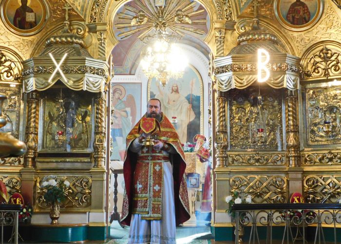 В Знаменском храме с среды 15 апреля начаты богослужения Светлой седмицы. Богослужение служил протоиерей Александр Поляков.