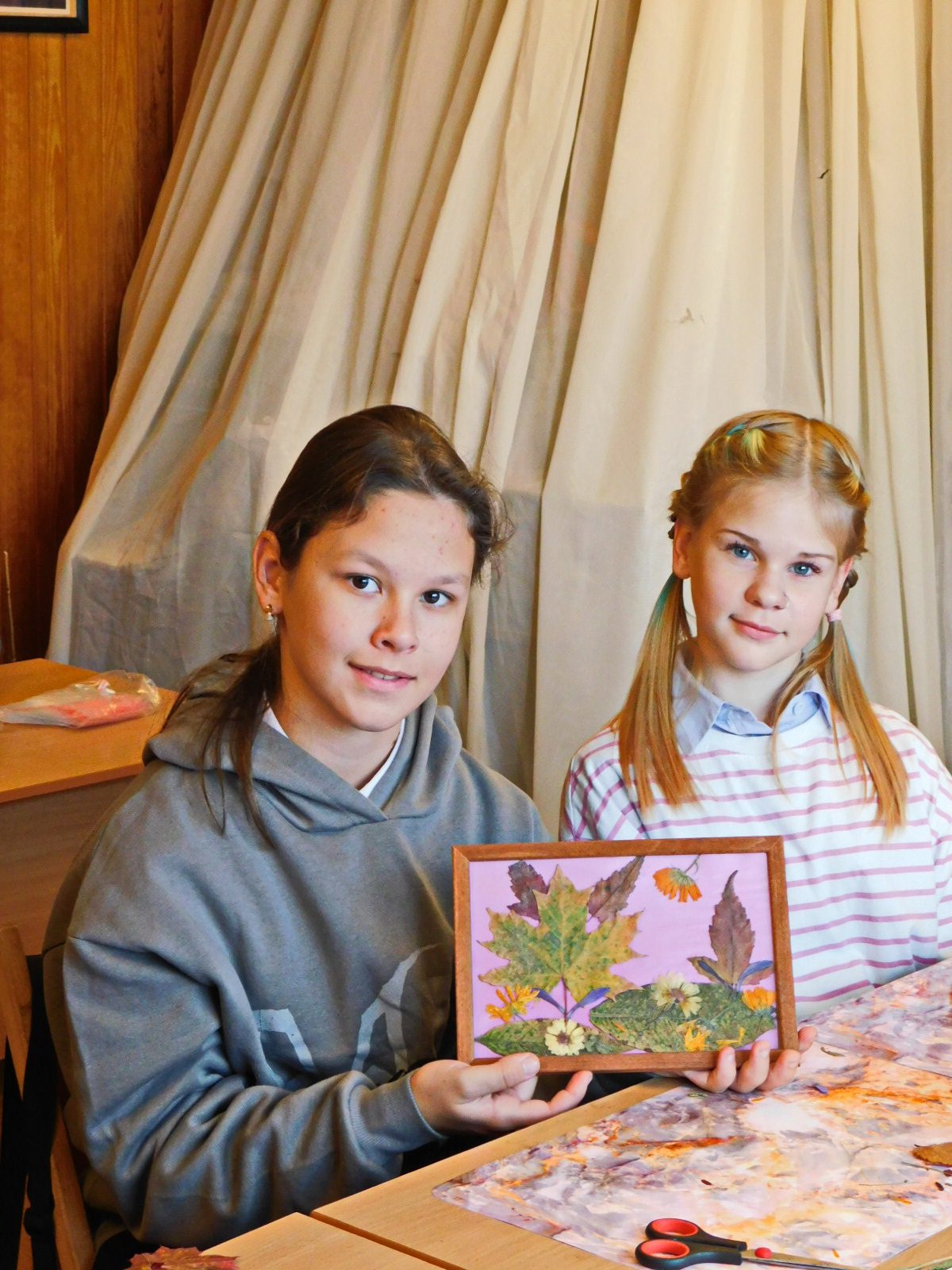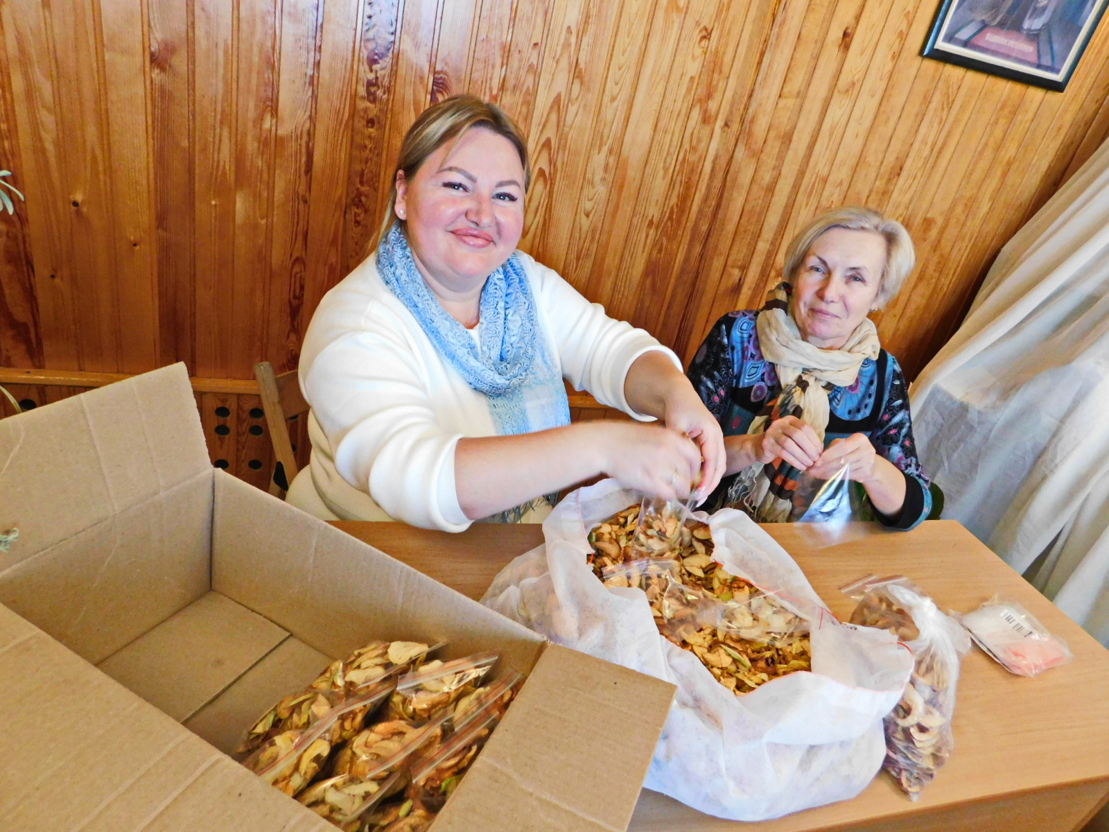 Далее творческий урок- создание осенней композиции, которые украсят стены школы. Вот и закончился первый учебный день — с Богом в новый учебный год. А мамы занимались упаковкой в мешочки уральских сушенных яблочек для воинов СВО с радостью и молитвой.