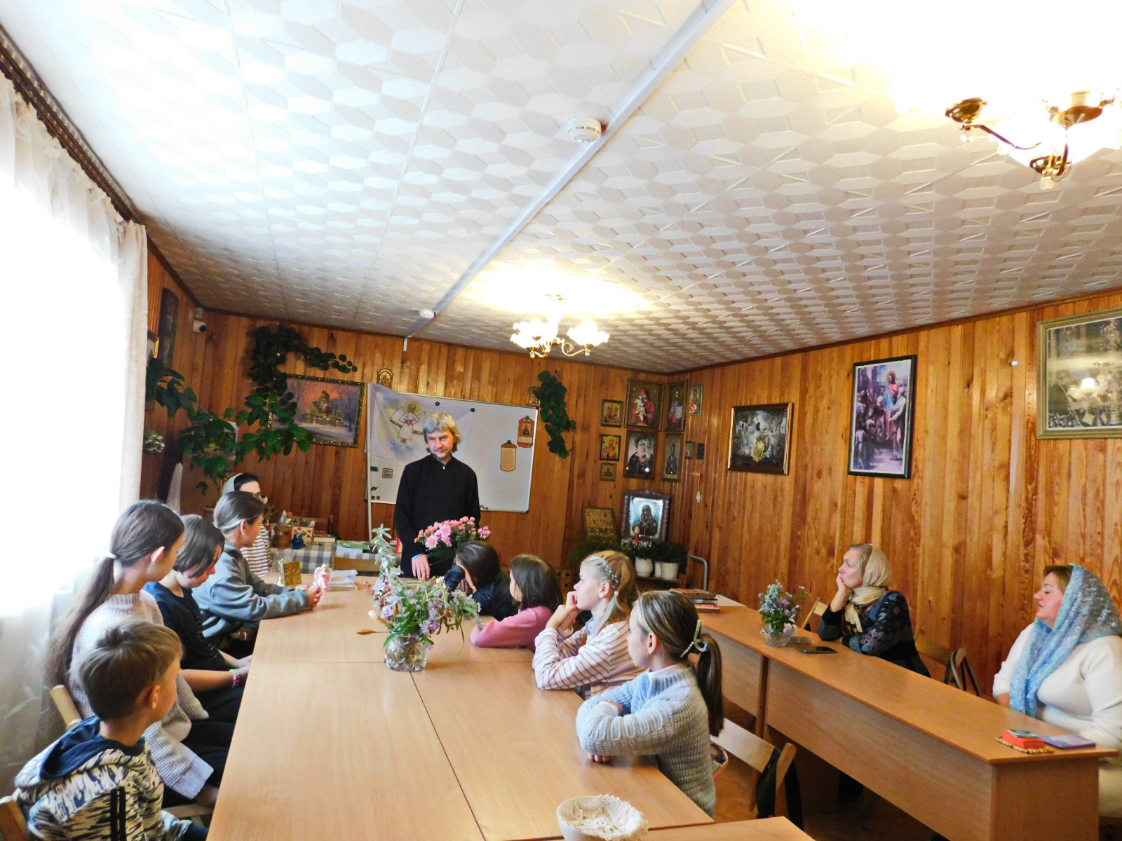 И конечно были подарки от прихожан храма. Радостно встретили учащиеся настоятеля храма протоиерея Сергия Седина, его пожелания и отеческое наставление очень важно для ребят, родителей и учителей. На предстоящую неделю ребята получили задание. А потом —