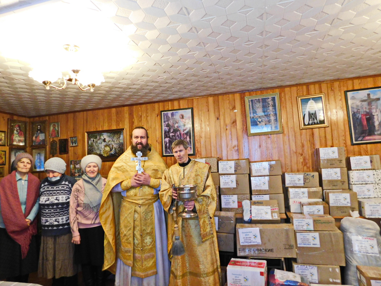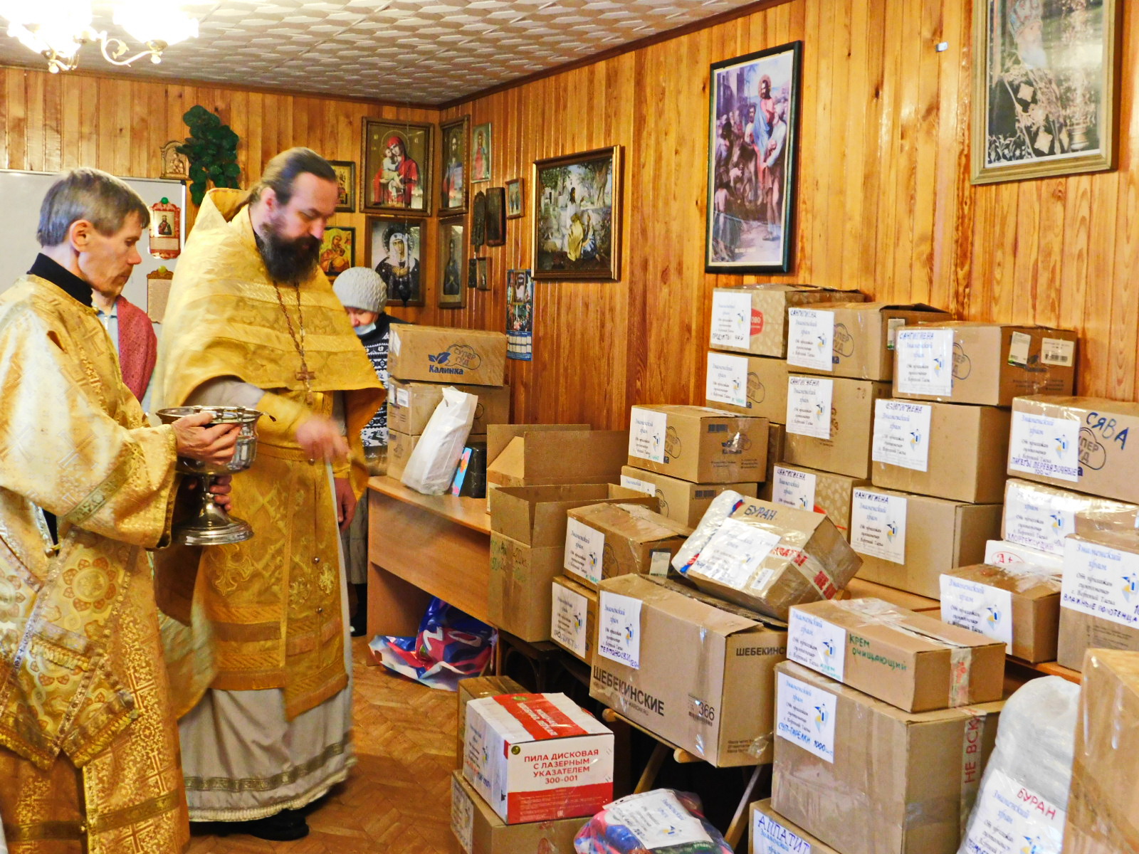 Перед отправкой протоиерей Александр Поляков отслужил молебен и освятил гумпомощь. Гуманитарную помощь приняли боевые волонтеры фонда СВОИХ НЕ БРОСАЕМ город Екатеринбург: воин Георгий Победоносец и Оксана Матвеева. Они уже по духовной необходимости помолились у образа Пресвятой Богородицы «Знамение», поставили свечи.