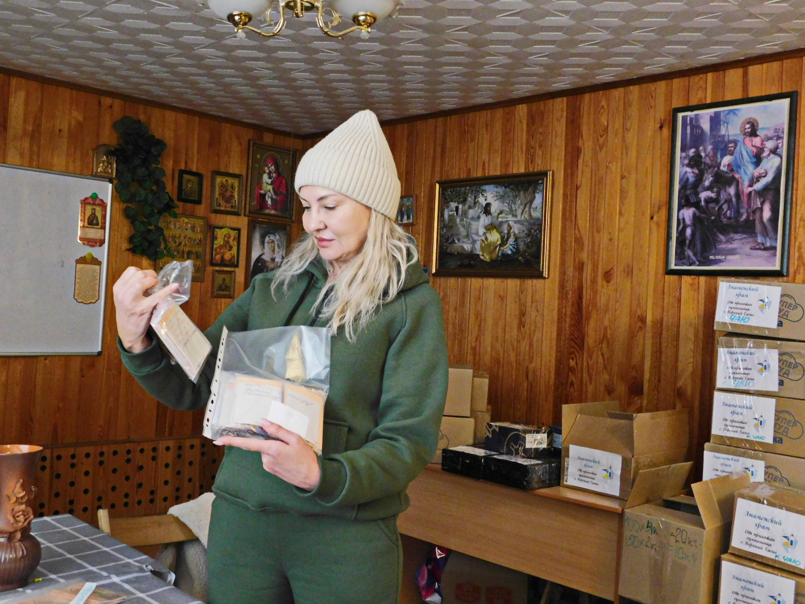 В преддверии праздника Дня Защитника Отечества от прихожан Знаменского храма города Верхний Тагил была отправлена гуманитарная помощь для воинов в зоне СВО. Она сформирована по заявкам воинов танкистов, командиров подразделений с позывными: » Аппатит», «Сява», «Буран». В списке гумпомощи : термобелье, нижнее белье, термоноски, вязаные и простые носки, средства сангигиены, хлоргексидин, влажные салфетки и полотенца, крема для очистки рук, гвозди для строительства укреплений, продукты, кондитерские изделия, чай, кофе, домашнее консервирование и др. От прихожан храма переданы индивидуальные пакеты с молитвословами православного воина, пояски с псалмами, иконочкой Пресвятой Богородицы «Знамение» и письма от прихожанки Рахимовой Натальи, а также красивые поделки ребят воскресной школы храма «Чистое сердце». Очень трогательные поздравления, рисунки были переданы от учащихся МАОУ СОШ №8 г. Верхний Тагил для воинов к празднику Дня Защитника Отечества, которые волонтеры фонда доставят в зону СВО.